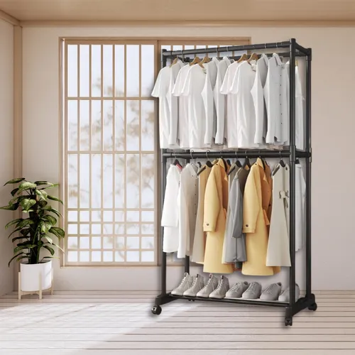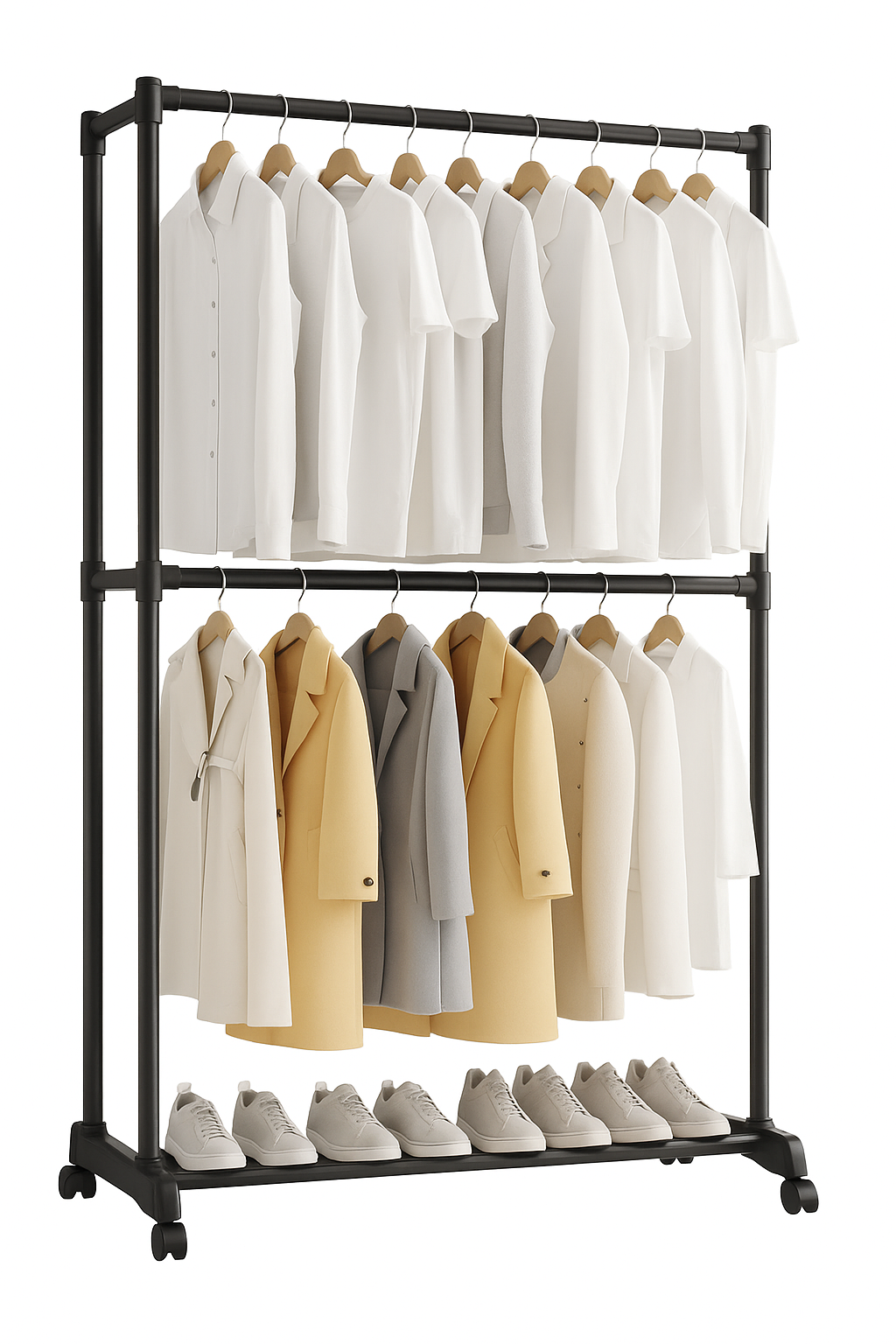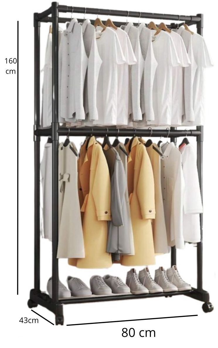 Cabideiro Arara de Roupas com Sapateira Preto – Capacidade 10kg