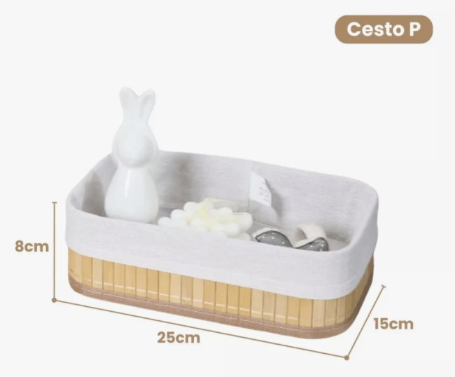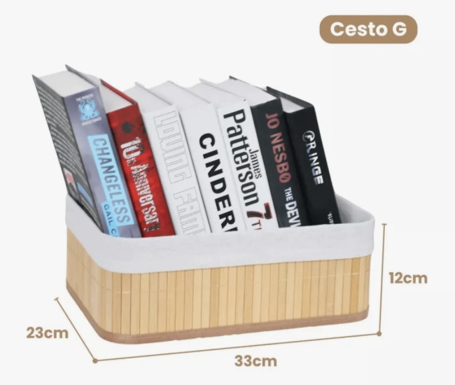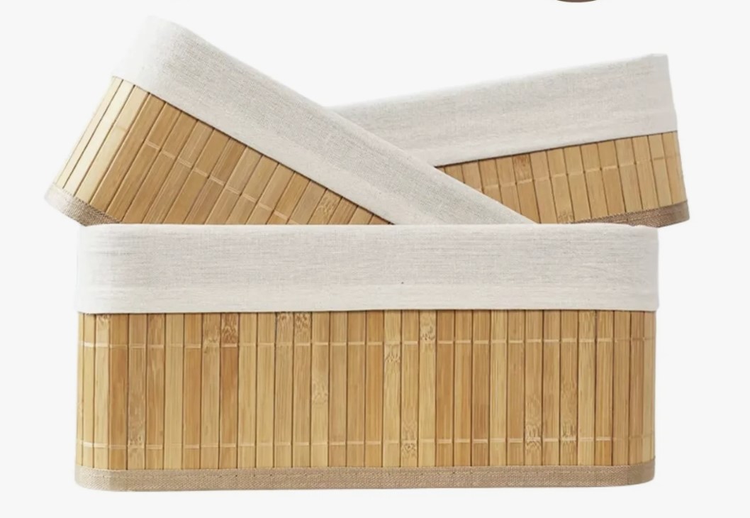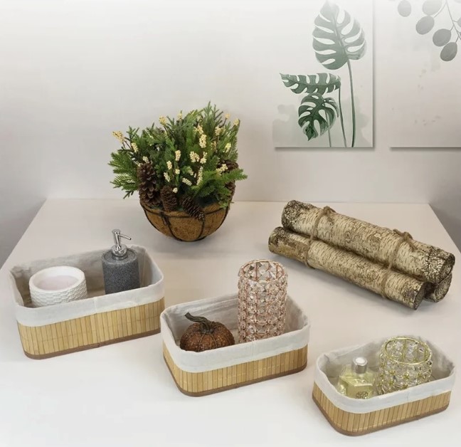 Kit 3 Cestos Organizadores de Bambu Multiuso com Forro