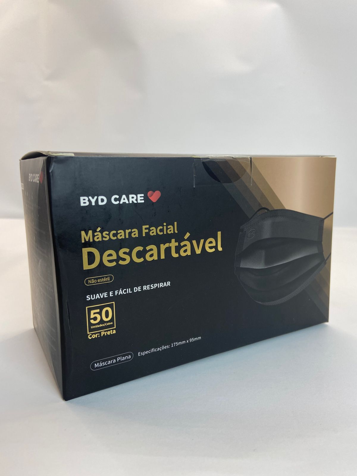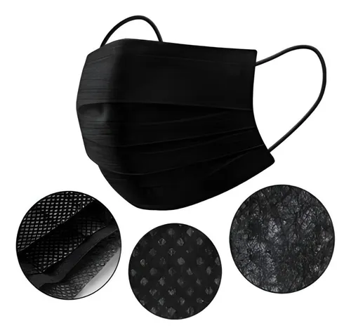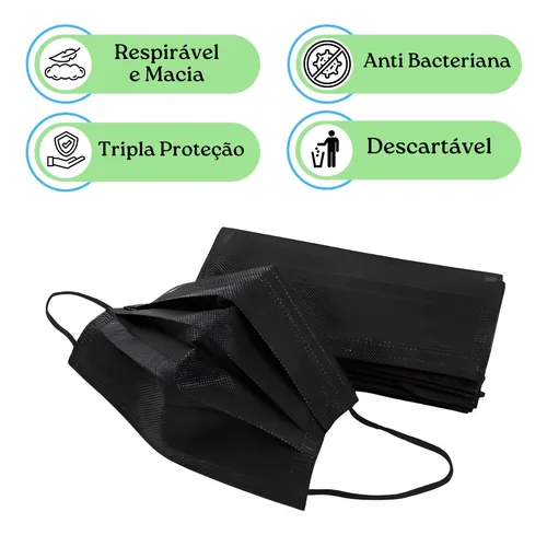 50 Máscara Descartável Tripla Facial Filtro Caixa Byd Preto