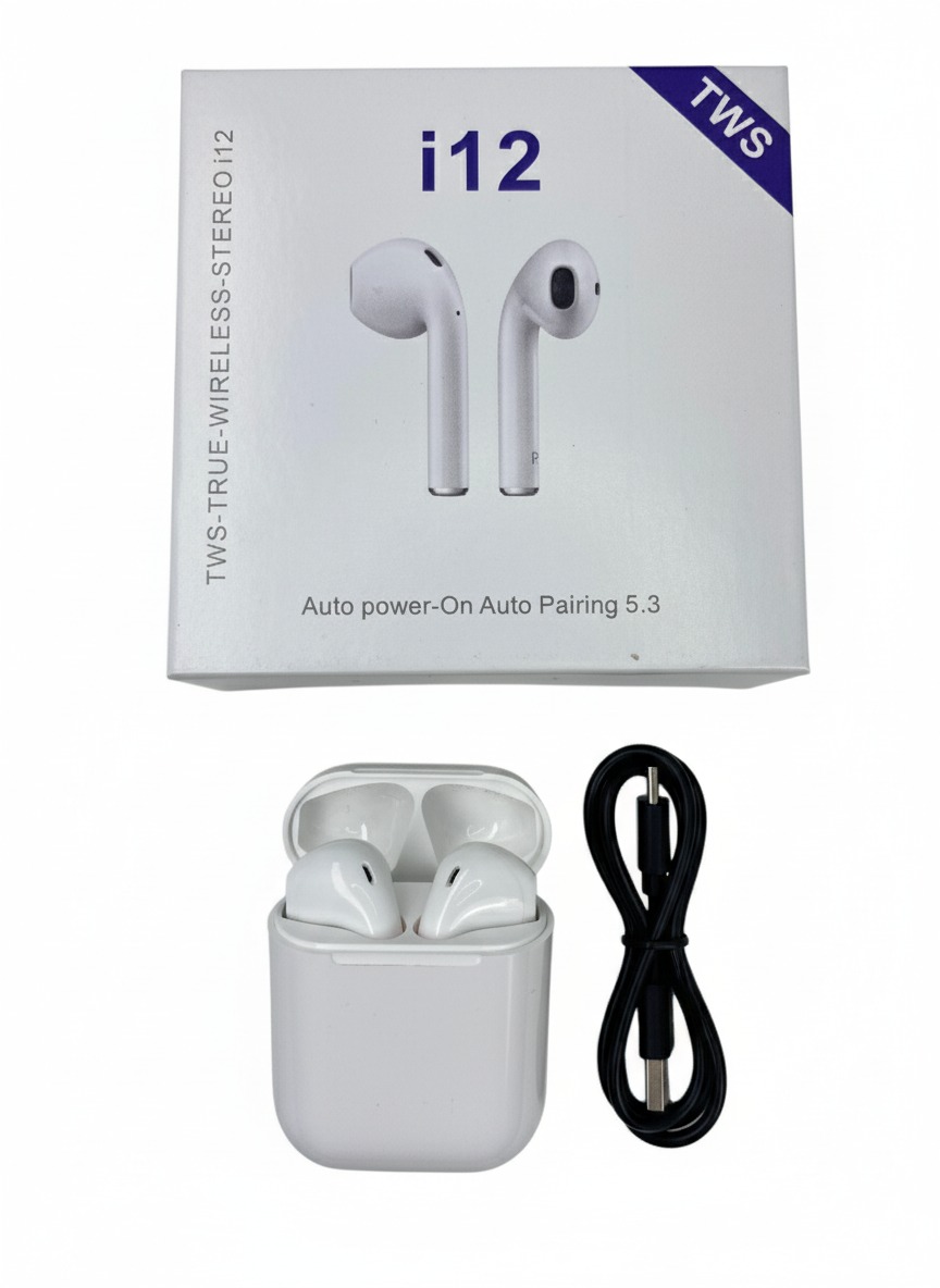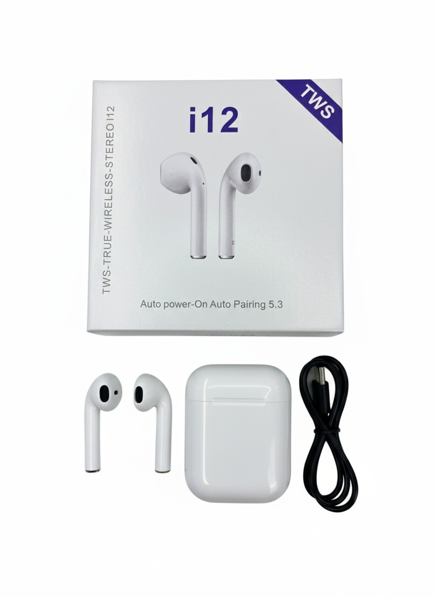 Fones De Ouvido Sem Fio I12 Touch Control Tws, Cor Branca Cor Branco